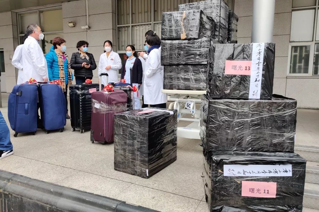 我校附属曙光医院的第二批3位医务工作者28日下午随队出征,各类医疗物资装了好几个大箱子。考虑到隔离服穿脱不易,不仅不能吃饭喝水,连上洗手间都异常麻烦,她们甚至自行购置了成人纸尿裤带去湖北,穿在隔离服里面,就是为了把上洗手间的时间节约出来帮助更多需要她们的人。出发前往机场前,队员们纷纷剪去了留了多年的长发,既为了穿脱隔离服更方便,更是“削发明志”,表达在这场抗击疫情的阻击战中必胜的决心!