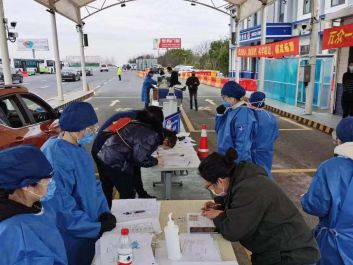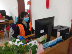 16级护理本科班杨双洁,在上海市金山区亭林镇复兴东路居委会负责外来人员来沪登记和居民预约口罩登记工作。