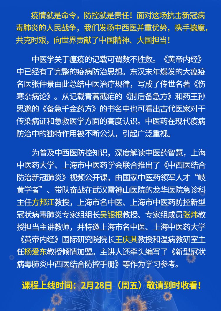 《中西医结合防治新冠肺炎》视频公开课28日上线