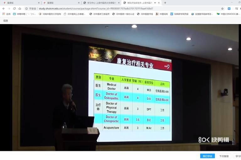 13:30,张宏老师的《脊柱评估新技术》课程开课了,胡俊威同学准时进入云课堂开始学习。张宏老师声情并茂地讲课,还给大家普及了关于针灸在国外推广教学的现状,正可谓干货满满。