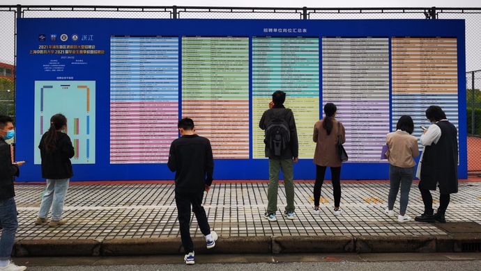 解放日报·上观新闻记者2日走进浦东新区进校园大型招聘会暨上海中医药大学2021届毕业生春季校园招聘会,在校园体育场上医疗卫生、生物医药、教育科研、医疗器械、互联网健康咨询等诸多行业,300余家用人单位的超过2500个招聘职位正虚席以待,逾2000名应届毕业生参会应聘,当场面试学子就有千余人次。据悉,这次“杏林起航·志在岐黄”的专业级春招,岗位需求规模创下了历史新高。