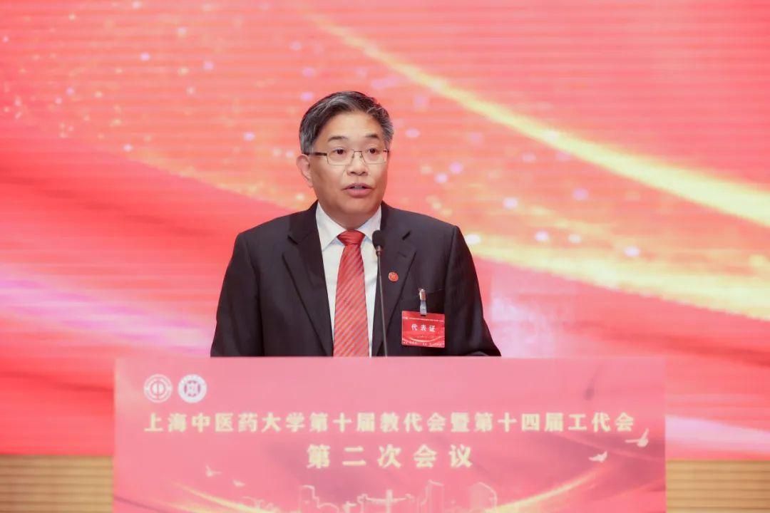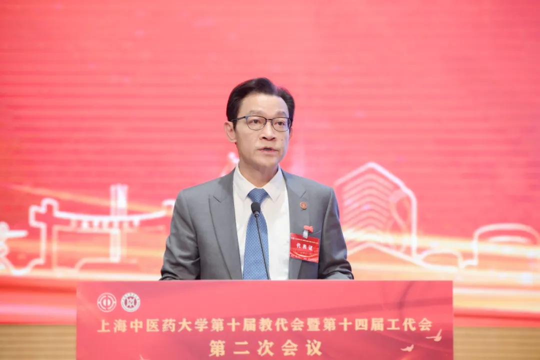 2024年12月23日至31日,上海中医药大学第十届教代会暨第十四届工代会第二次会议在学校图书馆裙楼四楼报告厅举行。特邀代表、中国科学院院士、我校创新中药研究院院长林国强,教代表、列席代表等共计197人参会。大会由校党委副书记、工会主席沈辉主持。