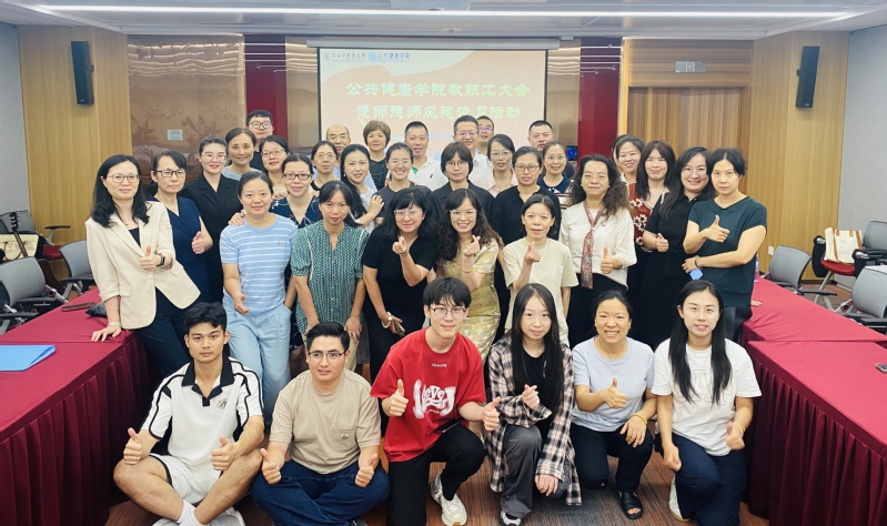 为进一步营造尊师重教良好氛围,凝聚广大教师积极投身教育强国建设的磅礴力量,9月26日中午,公共健康学院在标准化大楼辅楼206会议室举行全体教职工大会暨师德师风建设月活动。活动以庆祝第41个教师节为契机,围绕“以教育家精神铸魂强师,谱写教育强国建设华章”主题,通过教师分享交流、新进教师介绍和教师才艺展示三个环节,展示新时代教师乐教善教、潜心育人的良好形象。