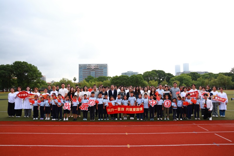 校党委副书记、副校长孟煜,附属浦东实验小学党支部书记陈蕾、执行校长王梦婷,学生工作党总支全体党员,公共健康学院全体师生党员与2025级全体本硕新生、营卫导师团导师,以及附属浦东实验小学师生与家长代表共200余人参加活动。升旗仪式由公共健康学院承办。