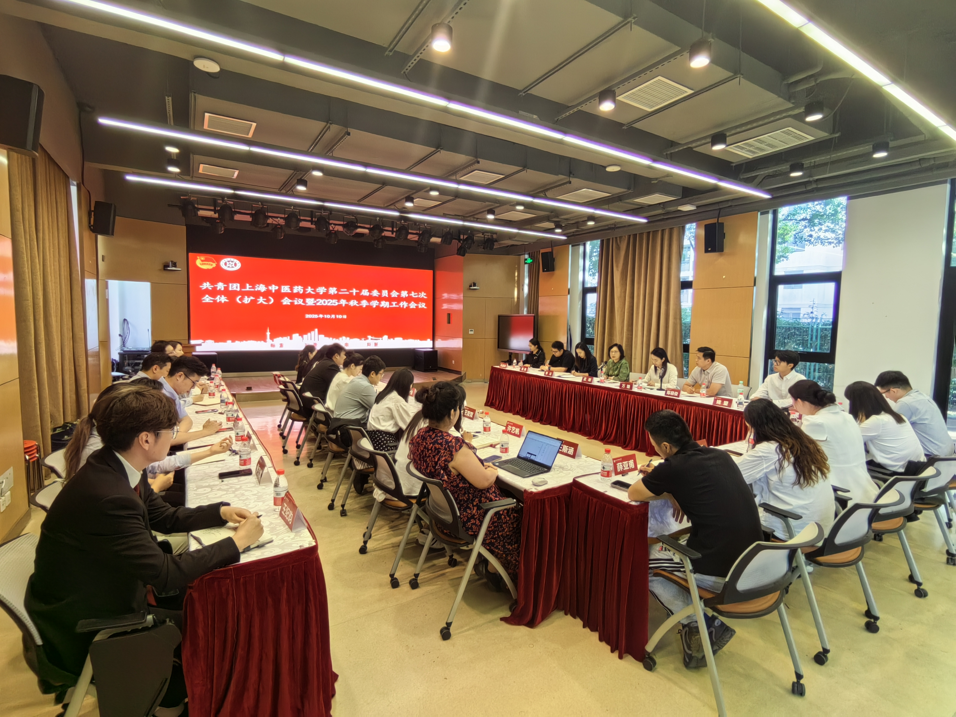 10月11日,共青团上海中医药大学第二十届委员会第七次全体(扩大)会议暨2025年秋季学期工作会议在大学生创新创业实践园召开。校党委副书记、副校长孟煜,校团委及二级团组织专兼职、交流学习团干部,学生会、研究生会主席团成员出席本次会议。