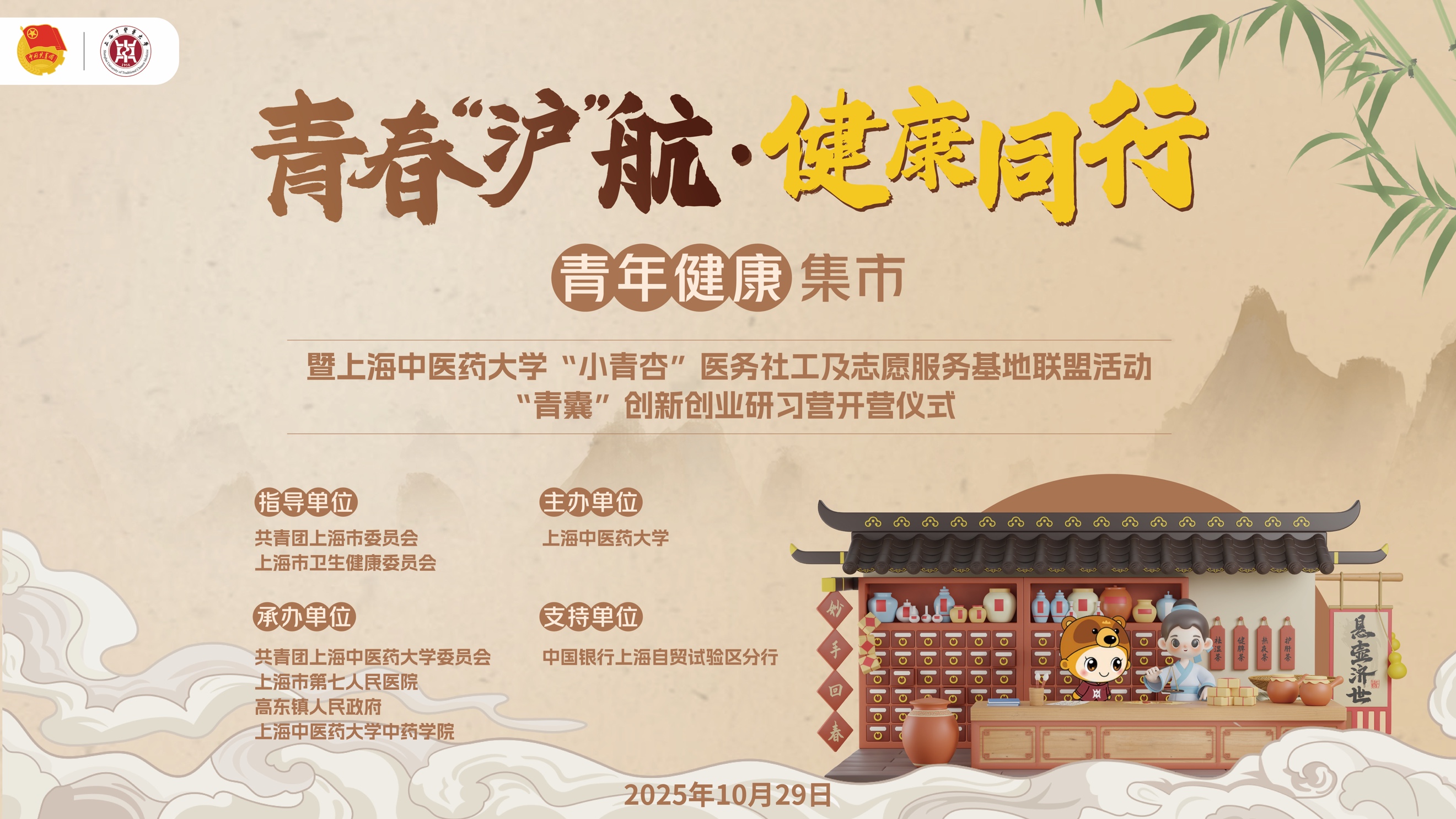 本次活动在共青团上海市委员会、上海市卫生健康委员会指导下,由上海中医药大学主办,高东镇人民政府、第七人民医院、上海中医药大学团委、中药学院共同承办。