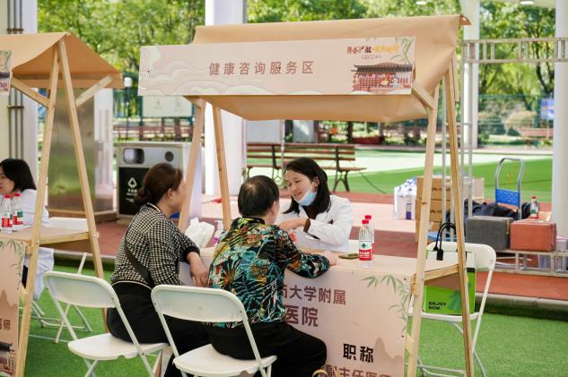 集市现场,健康咨询、中医体验、科普讲座、互动游戏等板块人头攒动,“沉浸式”体验成为关键词。来自上海市“医苑新星”的青年医师和上海中医药大学9家附属医院的医务青年志愿者们,带领市民一路“玩转”中医——从望闻问切到针灸推拿,从药食同源饮品试饮到三伏贴、耳穴压豆、火龙罐等技法体验,再到中医药文创产品展示……传统医学科、治未病科、康复医学科等二十余个专科以轻松有趣的方式“组团出道”,让市民在打卡中感受“防—治—康—养”全链条的中医药魅力。