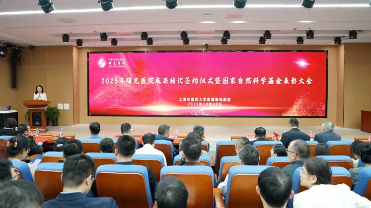 10月28日,上海中医药大学附属曙光医院召开“2025科研成果转化签约仪式”,全面总结近年来医院在科研成果转化领域取得的突破性进展,展示中医药创新发展的新成效。上海市科学技术委员会、上海市卫生健康委员会、上海申康医院发展中心相关领导出席大会,上海中医药大学副校长王拥军出席并致辞,共同见证曙光医院在科研成果转化领域的新突破。