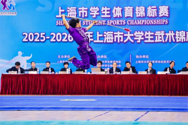 11月22日,2025-2026学年上海市大学生武术锦标赛在我校体育馆拉开帷幕。本次赛事由上海市教育委员会主办,上海市大学生体育协会、我校承办,上海市大学生体育协会武术分会协办,来自28所高校的140余名武术运动员参赛。