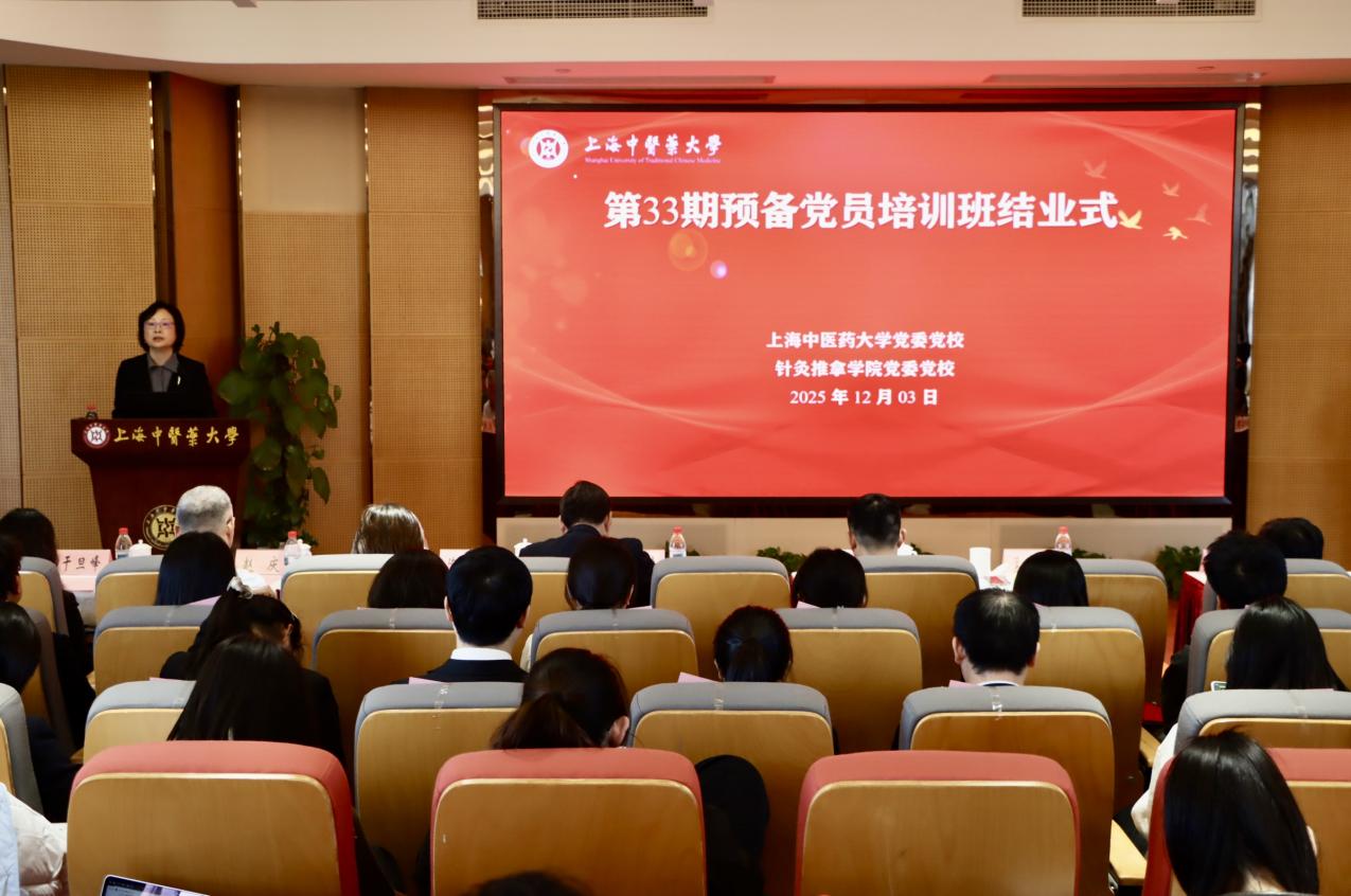 12月3日,由学校党校主办、针灸推拿学院分党校承办的第三十三期预备党员培训班结业式在行政中心301会议室举行。学校党委副书记、副校长孟煜,相关直属党组织负责人,培训班班主任和指导老师,以及本期培训班70名学员参加。