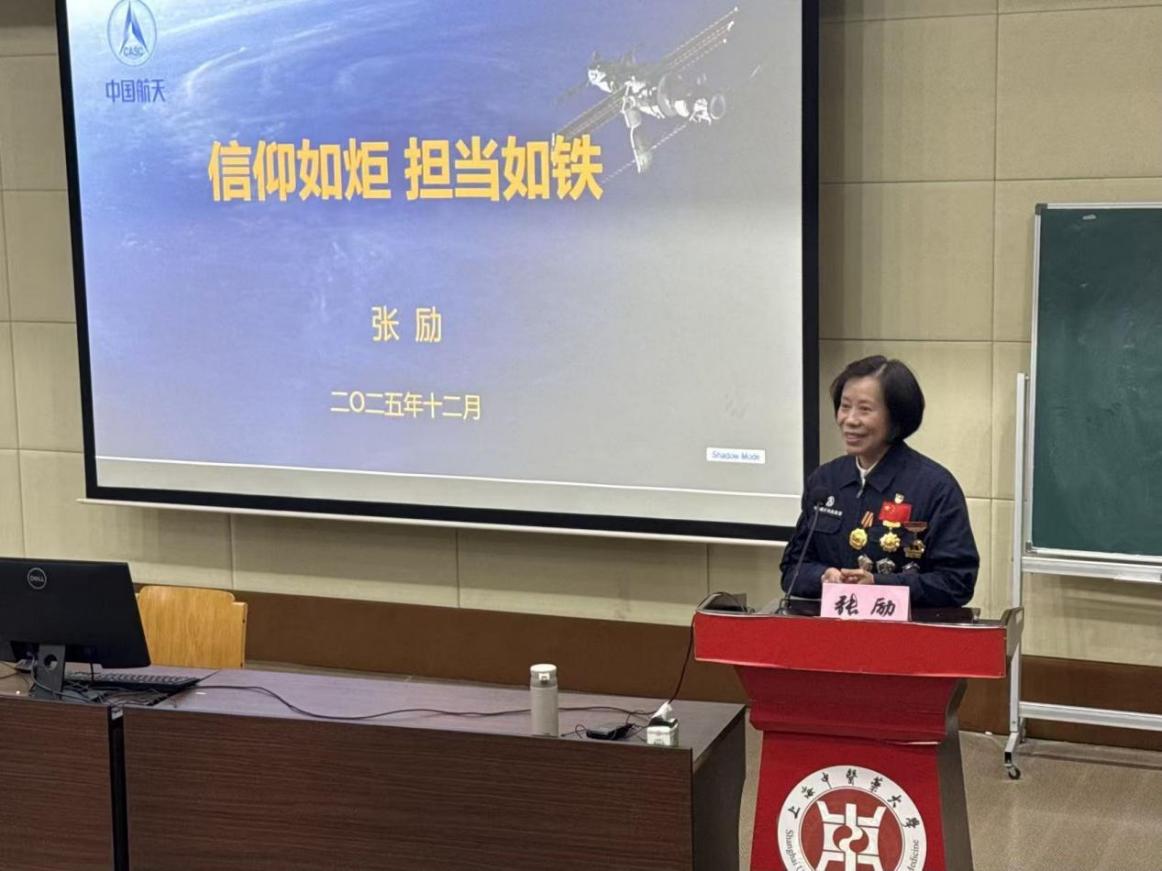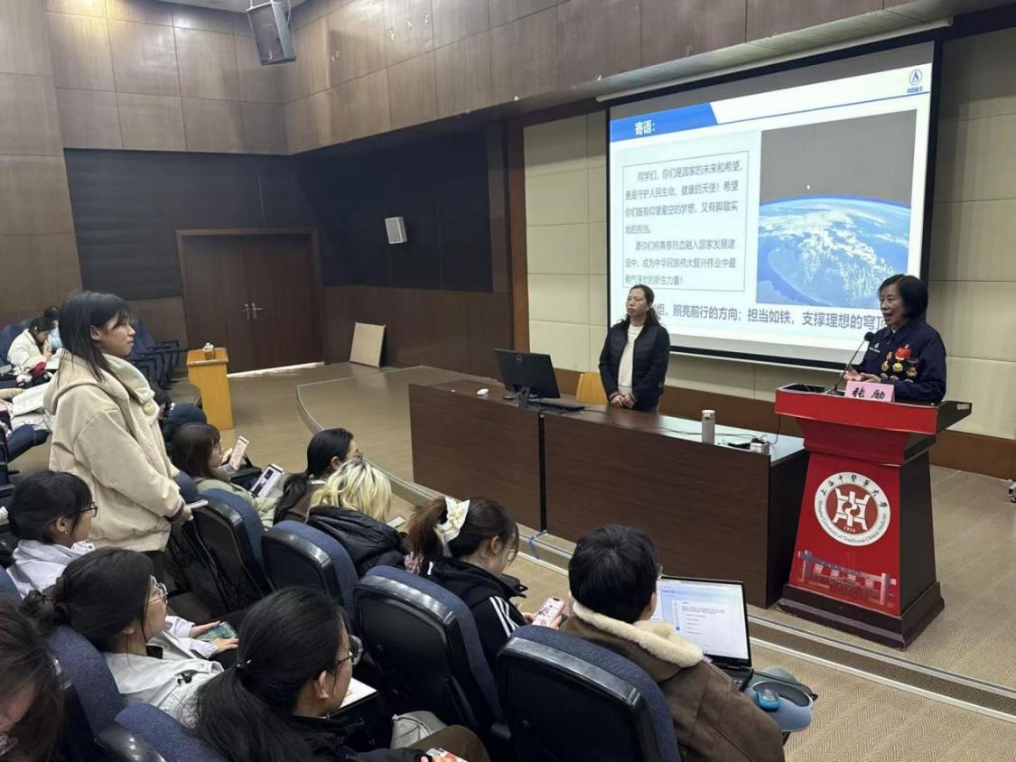张励从自身经历谈起,真实呈现了从军营到航天的人生轨迹。她认为,虽然航天与中医药领域不同,但是担当的内核相通。航天人的担当,是守护国之疆域、民之安宁;医者的担当,是守护生命健康、人之根本。这份守护的责任,都需要如铁的担当去践行。她勉励中医药学子,中医药的传承与发展,意味着要耐得住经典研读的寂寞,担得起临床实践的精细,更要有勇气在守正的基础上创新。
