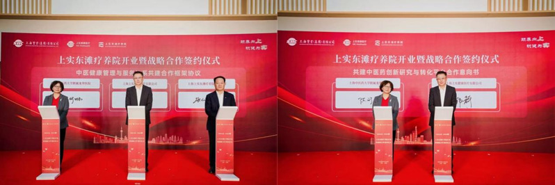 在开业仪式上,龙华医院与上实健康医疗签约共建中医药创新研究与转化平台合作意向书。龙华医院与上实健康医疗、东滩疗养院签约中医健康管理与服务体系共建合作框架协议。