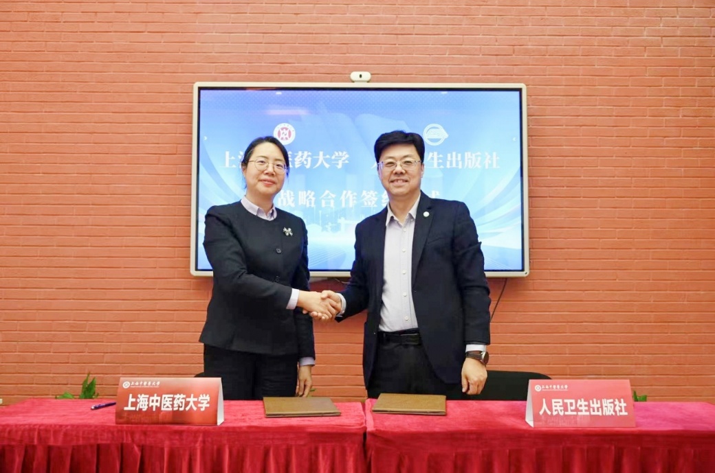 1月9日下午,我校召开上海中医药大学教材建设研讨会,以持续深化改革,推进中医药教材高质量发展为主题,就“十五五”期间学校教材建设重点任务开展研讨。会议邀请人民卫生出版社党委常委、副总经理宋秀全,人民卫生出版社中医药中心主任、人卫西南分社董事长张科,人卫华东分社副总编辑吴磊、副总经理夏小亮及编辑团队参与研讨。我校党委副书记、校长季光,副校长舒静,学校相关职能部门及二级学院分管教学工作负责人参会。会上举行了上海中医药大学与人民卫生出版社战略合作签约仪式。