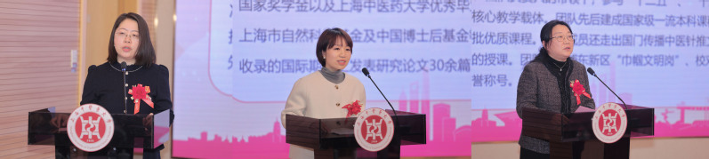 会上,2022—2024年度上海市三八红旗手、中药研究所中药功效成分发掘与利用全国重点实验室副主任、研究员杨莉,上海市教育系统第十五届比翼双飞模范佳侣、护理学院教授吴静,2023—2024年度校三八红旗集体负责人、针灸推拿学院院长赵琛分别分享了自身坚守岗位攻坚克难、将小家温暖融入事业发展、深耕教学践行育人使命的经历,诠释了女性工作者坚守初心、勇攀高峰的执着与担当。