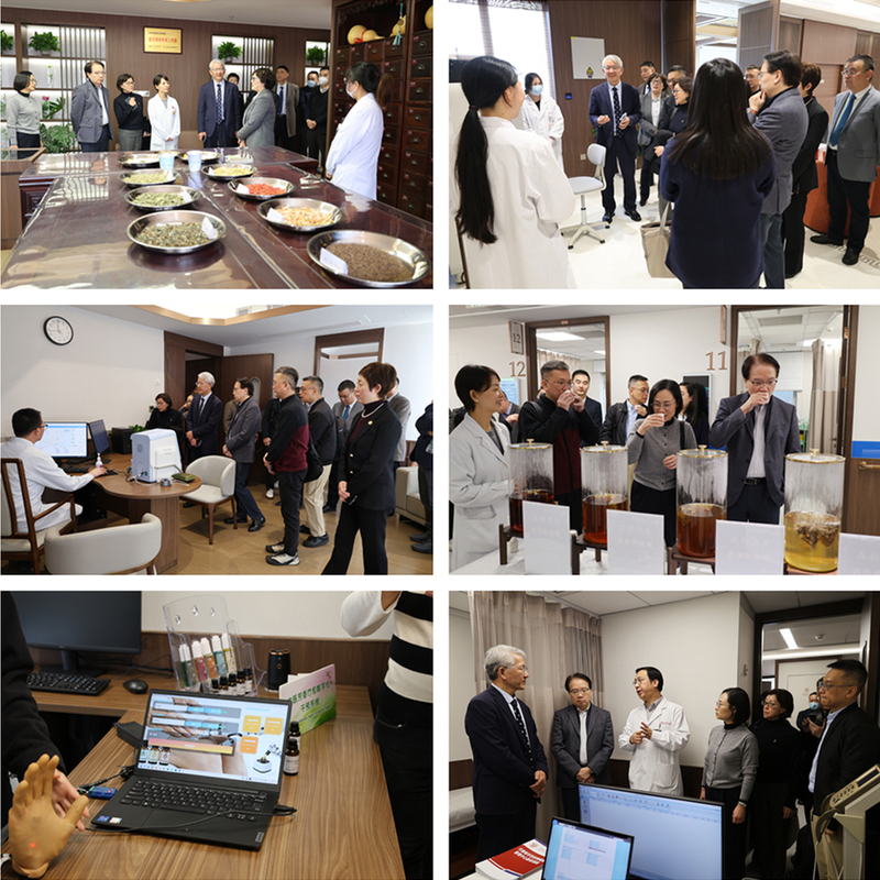 同期,香港医务卫生局中医医院发展计划办事处总监张伟麟、香港中医医院行政总监卞兆祥一行到访龙华医院,上海市卫生健康委员会副主任、一级巡视员胡鸿毅、中医药传承发展处处长聂爱国、外事处一级主任科员王晨晨,龙华医院院长陈昕琳、副院长王琛、副院长郑培永及相关职能部门负责人出席参访交流活动。双方就医疗协作、人才培养、中医药海外传播等达成合作共识,未来将在中医优势病种临床研究、高层次人才培养、科技创新转化、人工智能赋能中医药等领域加强合作。代表团一行实地参观了龙华医院的多个特色诊疗区域,亲身体验了中医药在现代科技赋能下的独特魅力,中医AI四诊预问诊仪、临床科研一体化专病数据库、中医芳香疗愈数字化干预系统等,展现了龙华医院在传统医学前沿技术探索与实际应用方面的深厚积淀与创新突破。此外,代表团还重点实地考察了龙华医院代谢相关性疾病健康管理中心,该中心整合医院优质资源,深度融合代谢体重管理、内分泌、营养、外科运动四大核心专科,将中医“整体观念”与现代“精准医疗”深度结合,从诊断、方案制定到干预、随访,全程高效便捷,为更多代谢疾病患者提供专业、温暖的全周期健康守护,对于慢病管理提供了全新的“一站式”中西医结合诊疗平台。